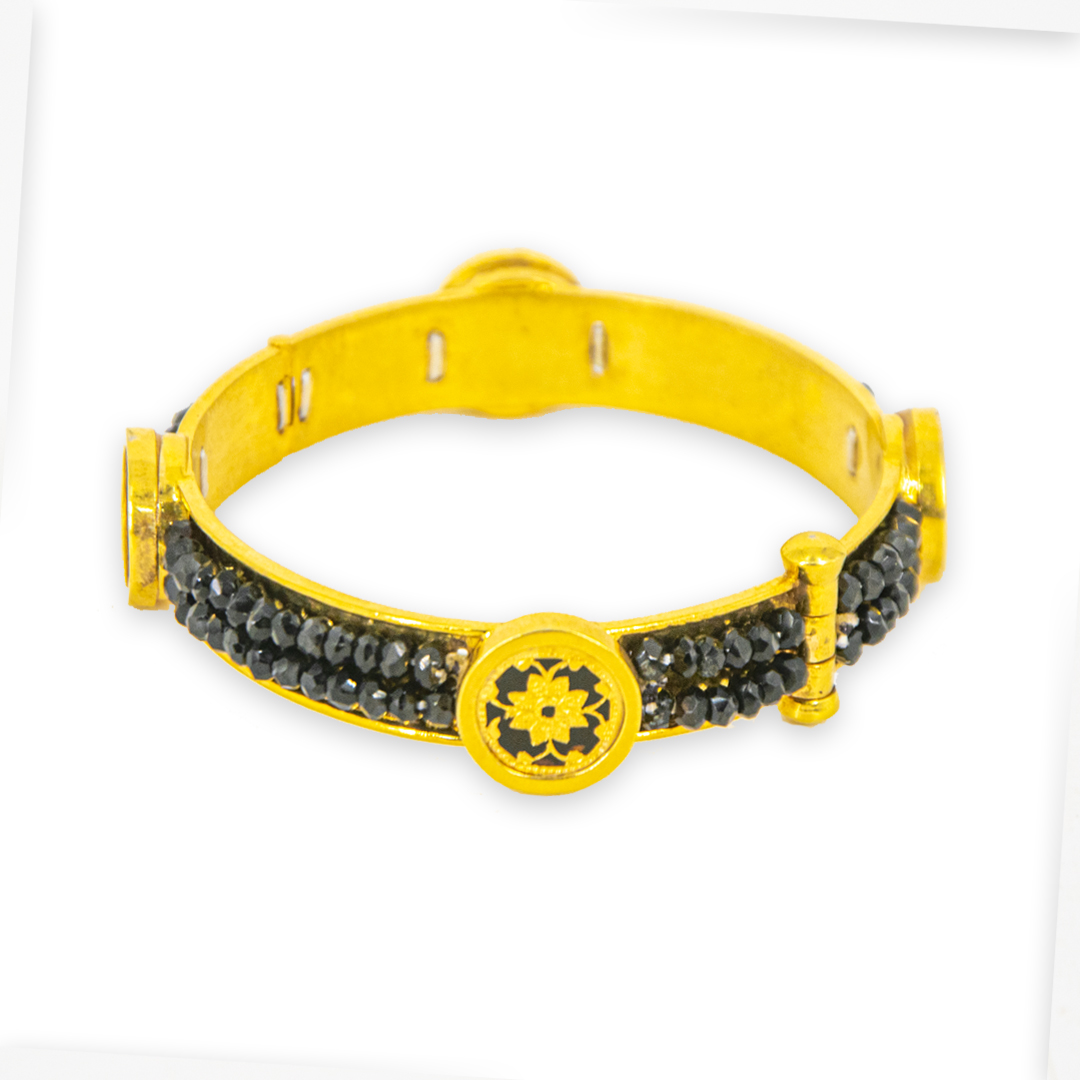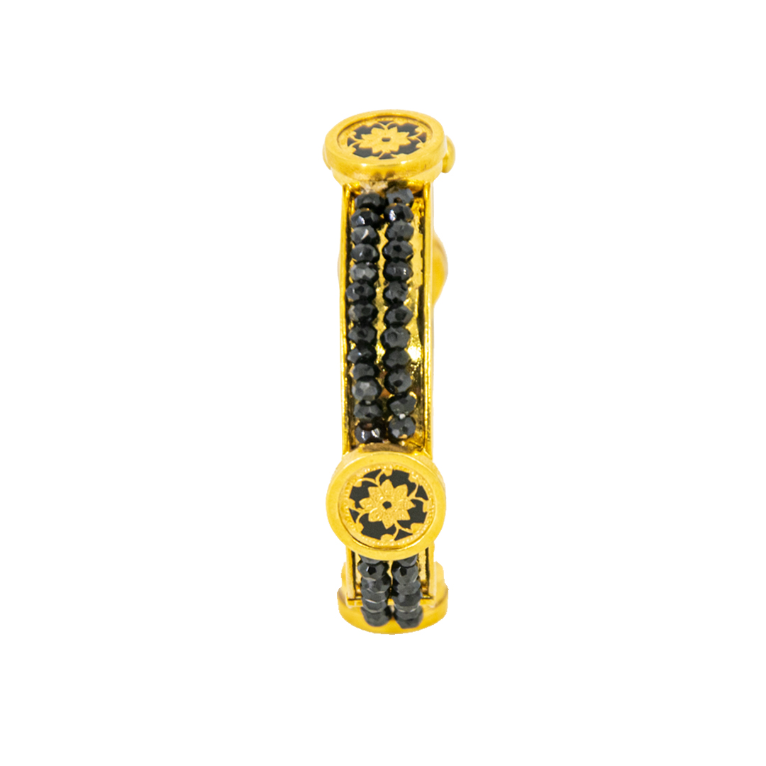 Bangle in 23 K Gold Thewa placed on bangle 4 places, with hands single bracelet made in silver gold plated with black Oynx stone , openable by screw